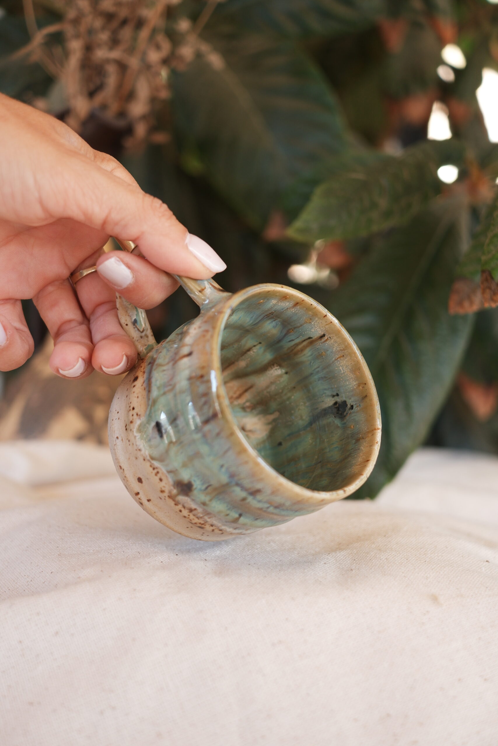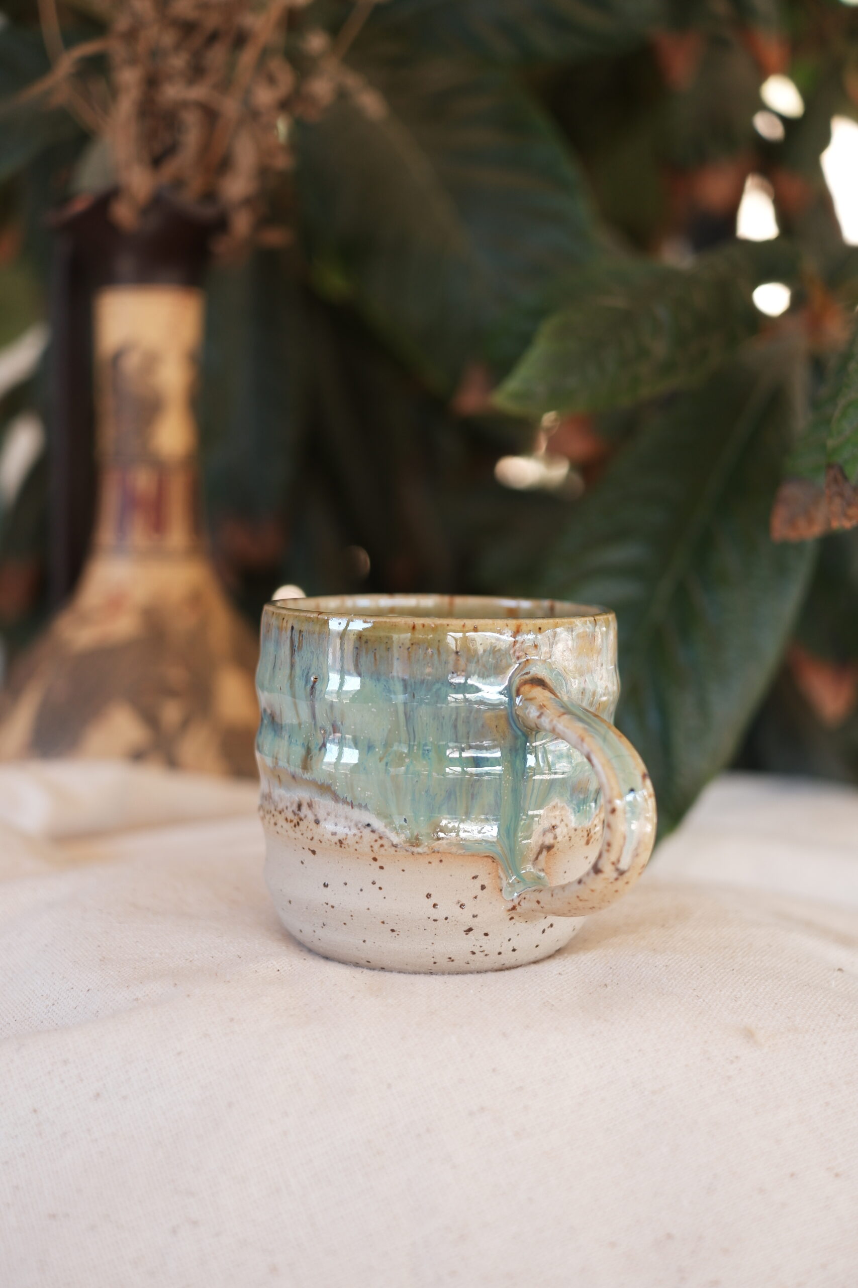 River Seramik Mug’ı çömlekçi tornasında şekillendirerek ve 1250 derecede pişirim yaparak hazırladım.