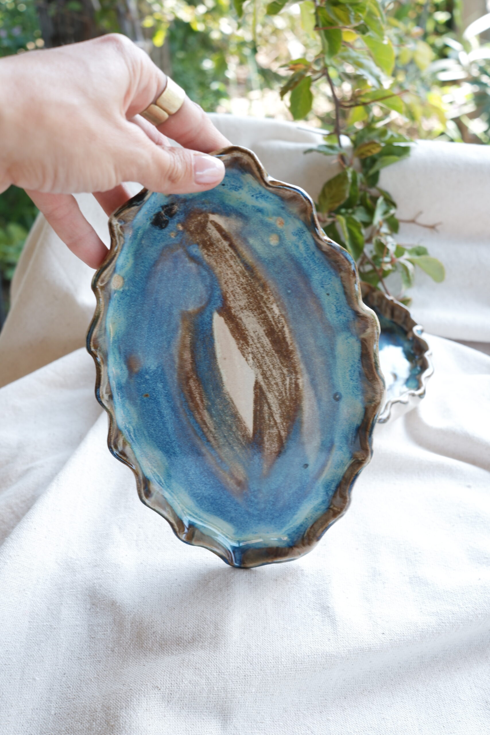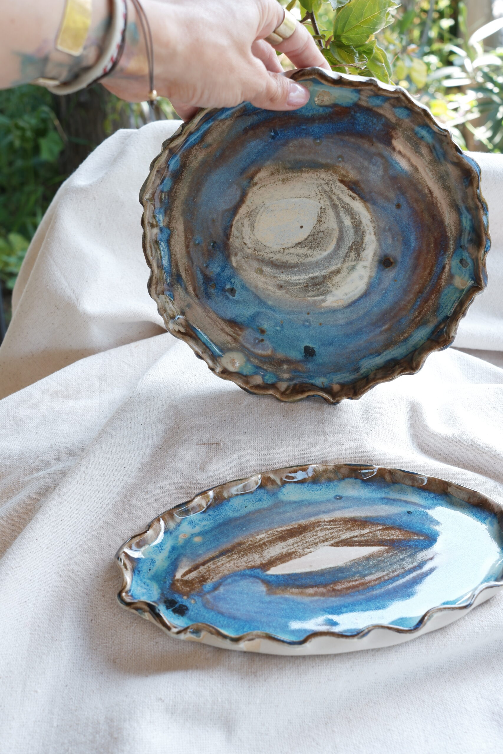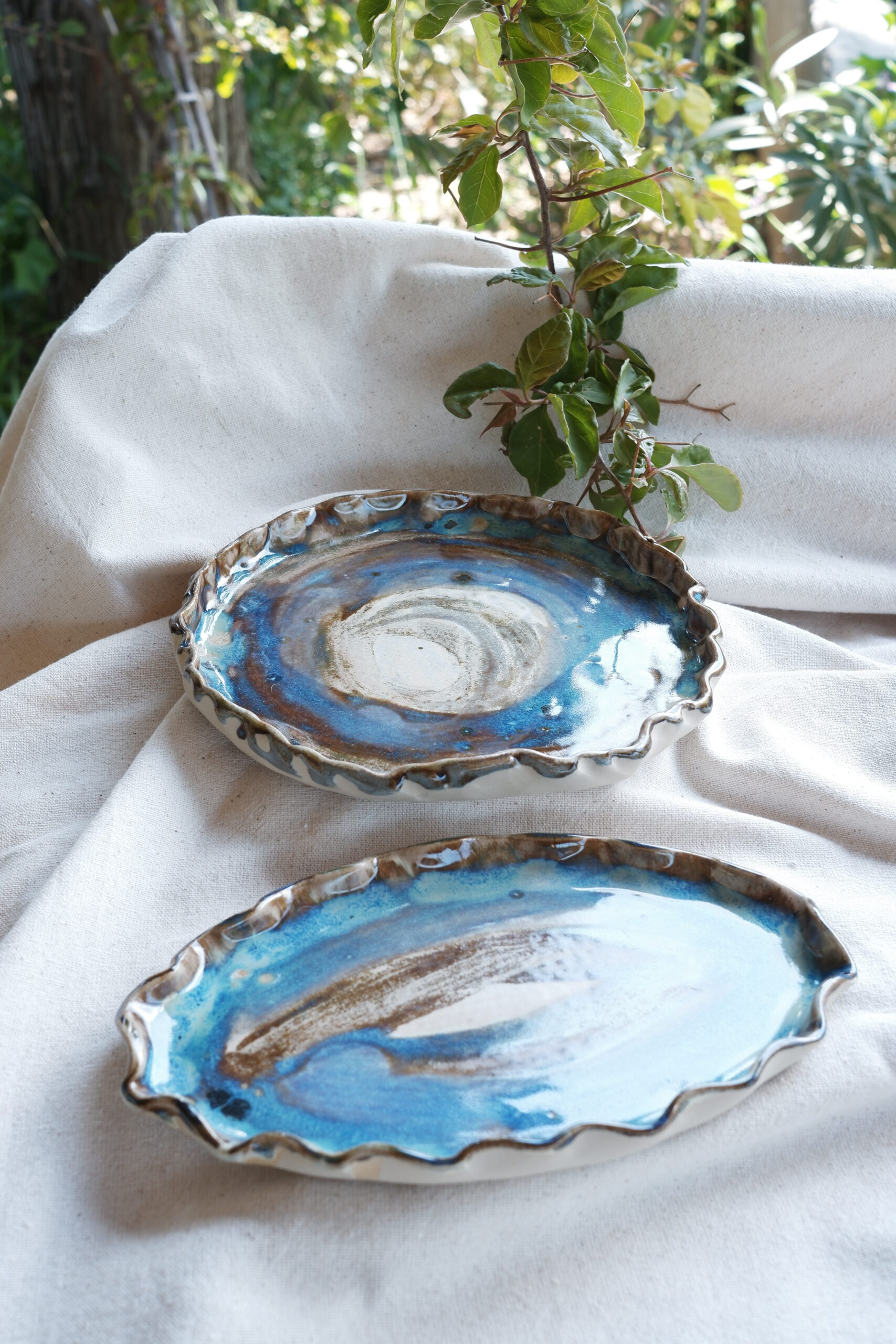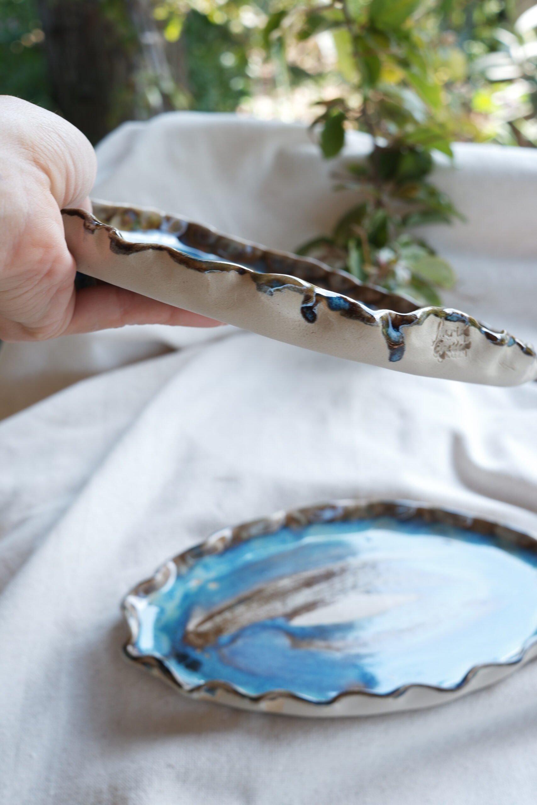 Her birini tek ürettiğim birbirinden farklı sofra sunumları içeren The Sea Remembers Collection’a ait parçalarından biri Flow Core Seramik Sunum Tabak setini stoneware çamurdan elde şekillendirerek ve 1250 derecede pişirim yaparak hazırladım.