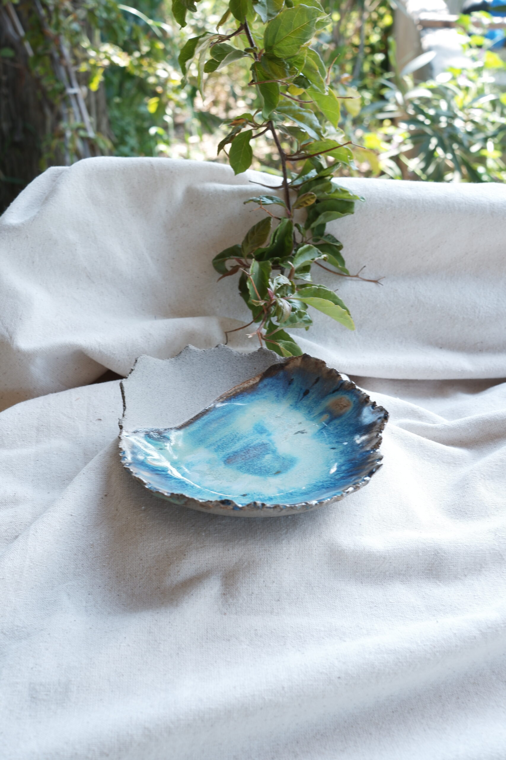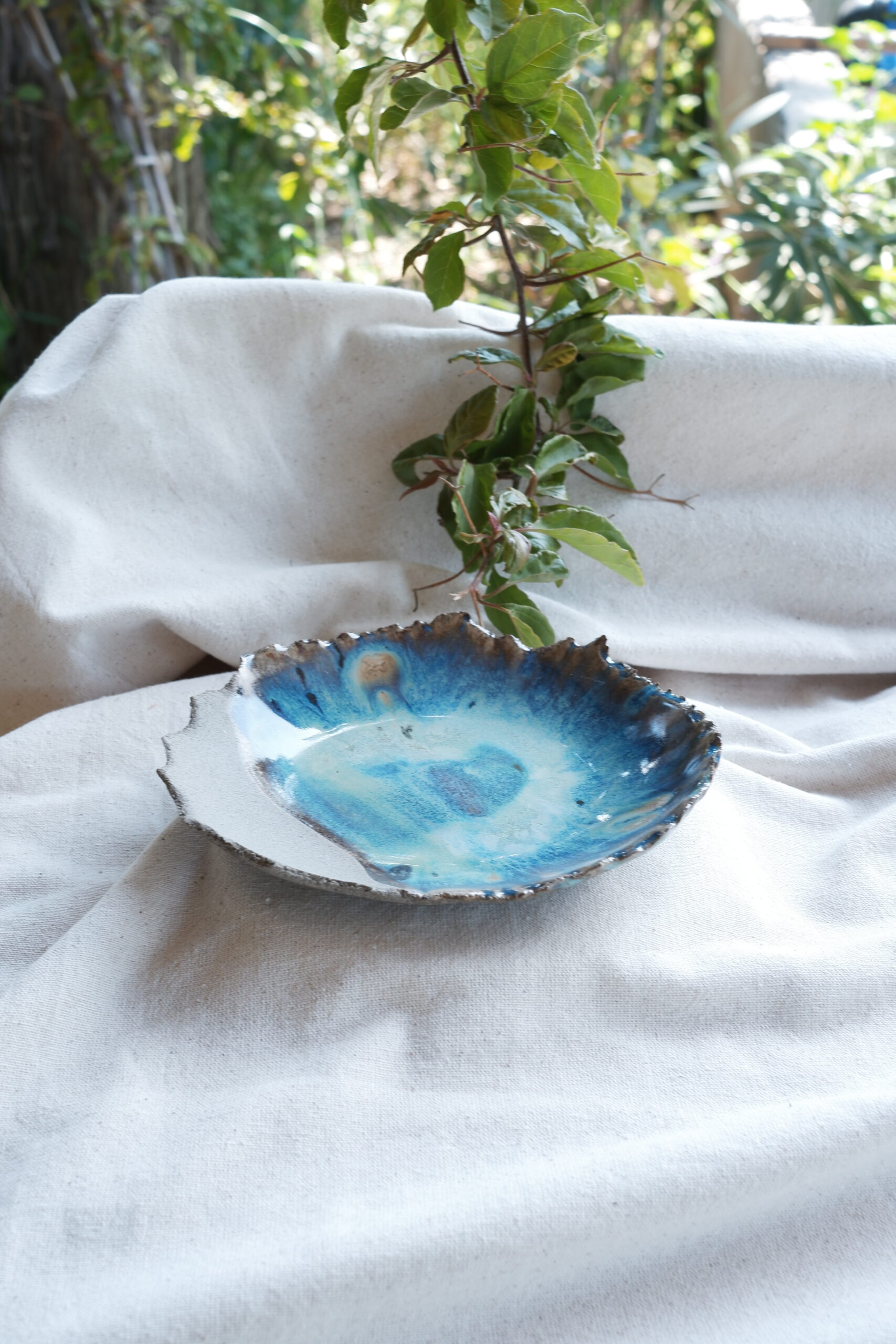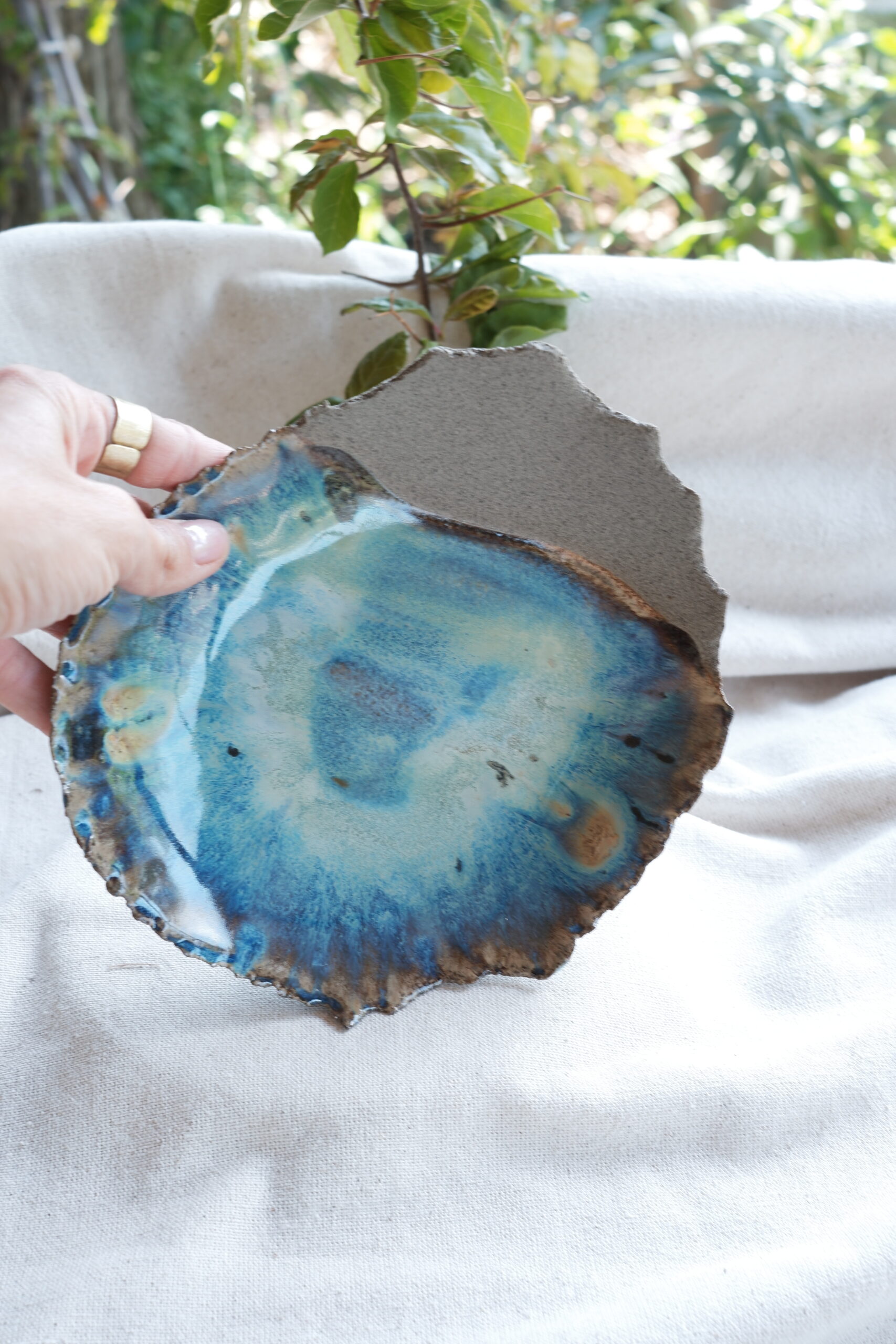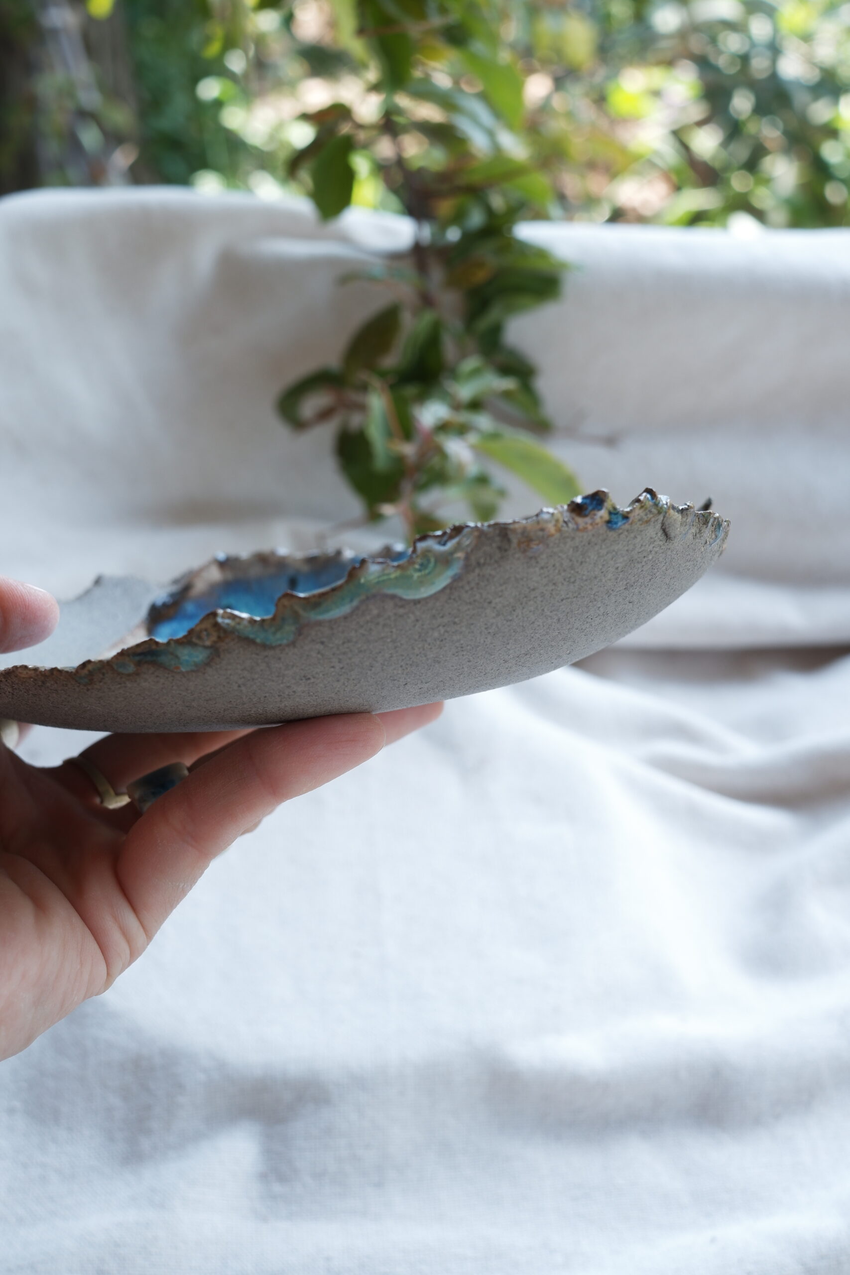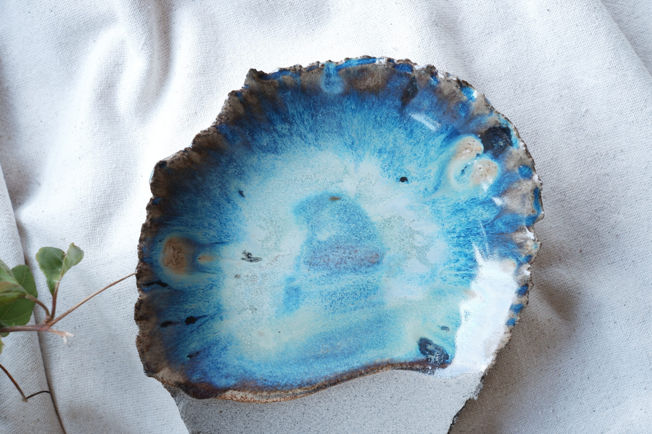 Her birini tek ürettiğim birbirinden farklı sofra sunumları içeren The Sea Remembers Collection’a ait parçalarından biri Ocean Core Seramik Sunum Tabağını stoneware çamurdan elde şekillendirerek ve 1250 derecede pişirim yaparak hazırladım.