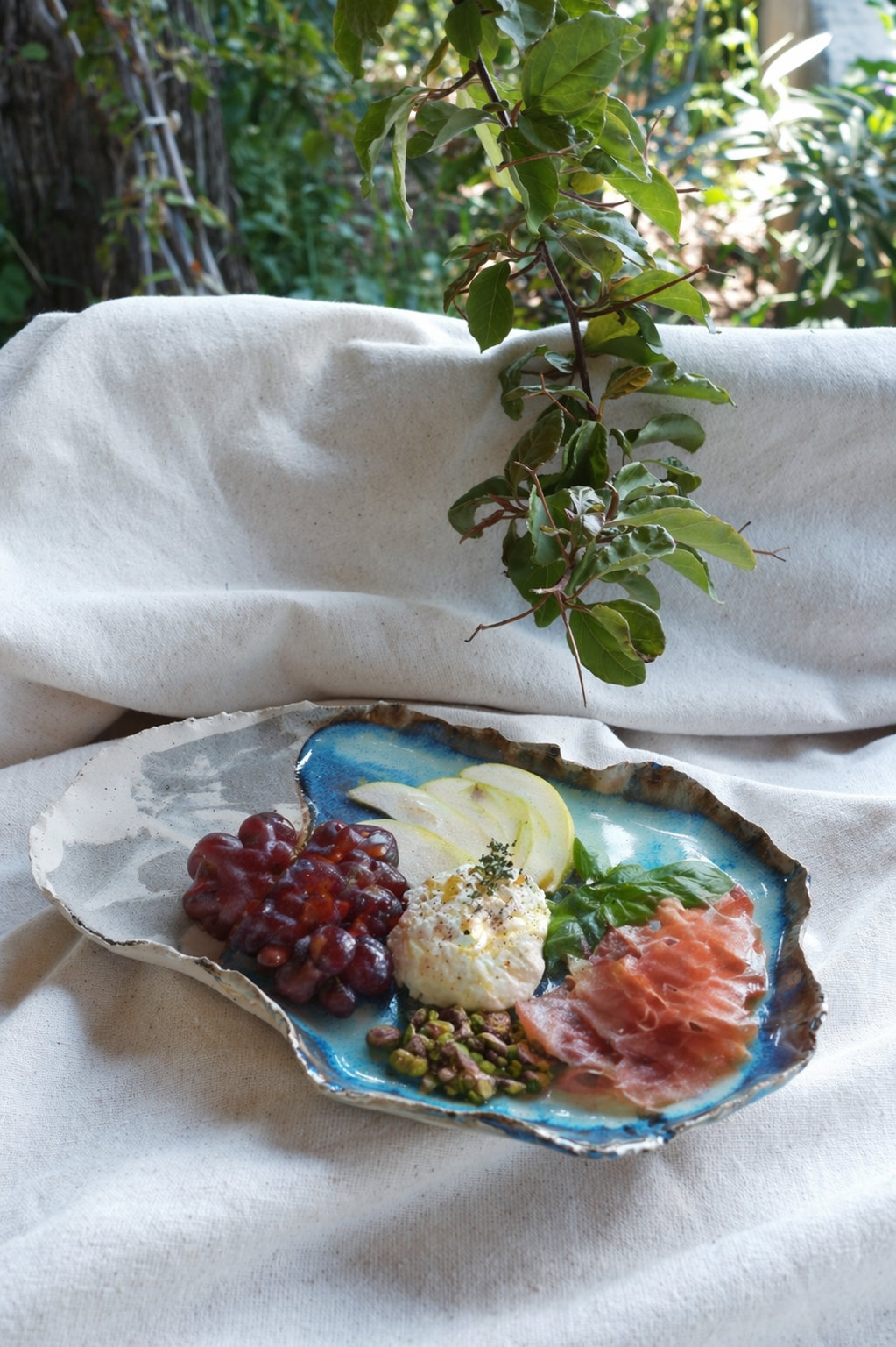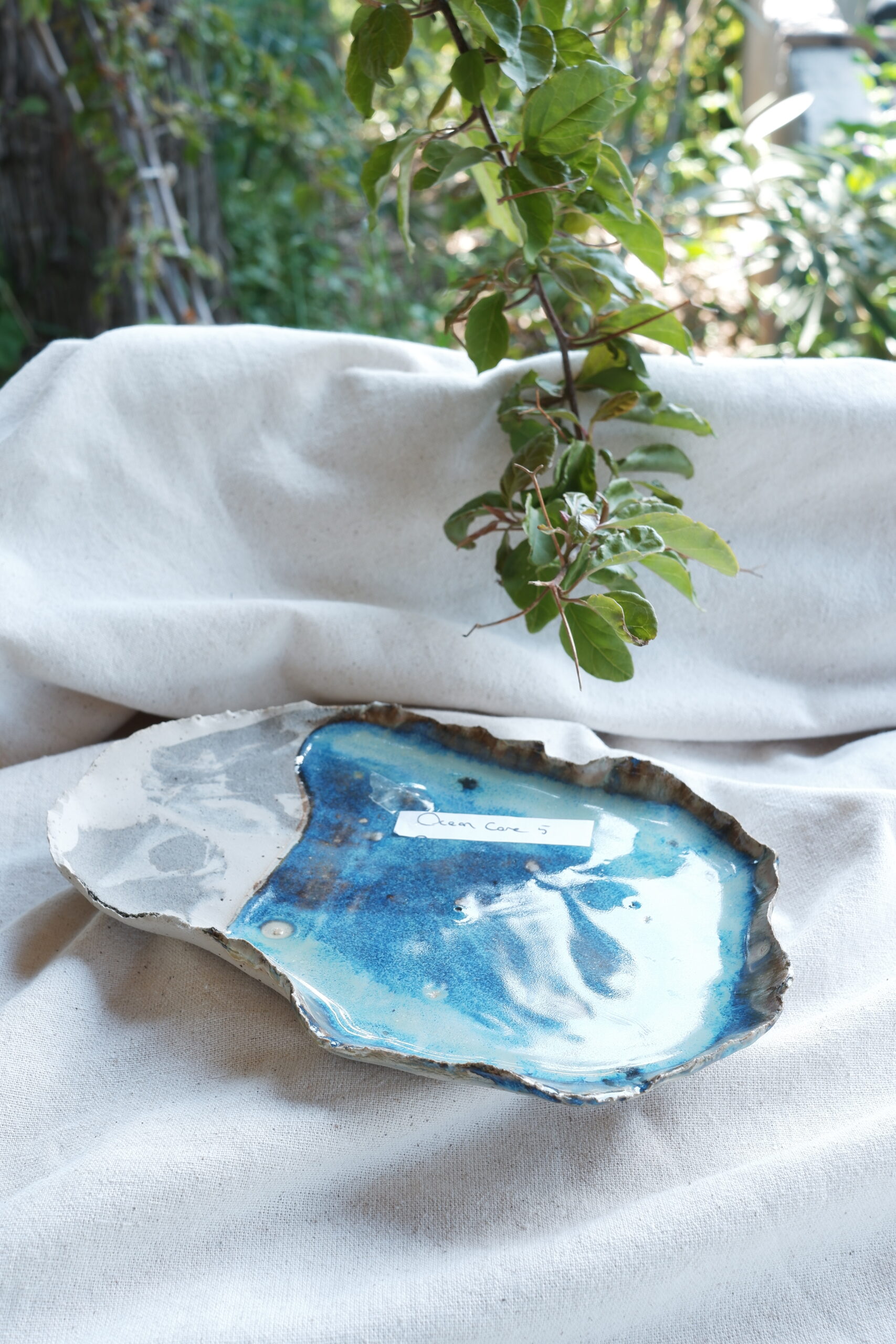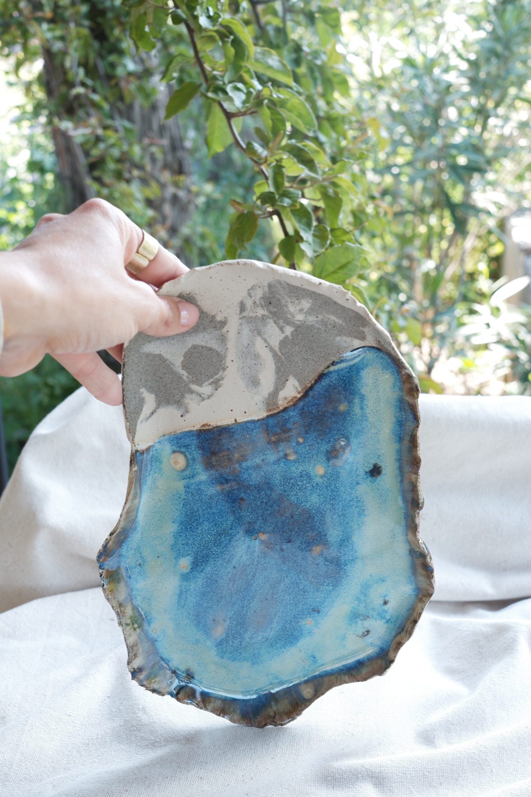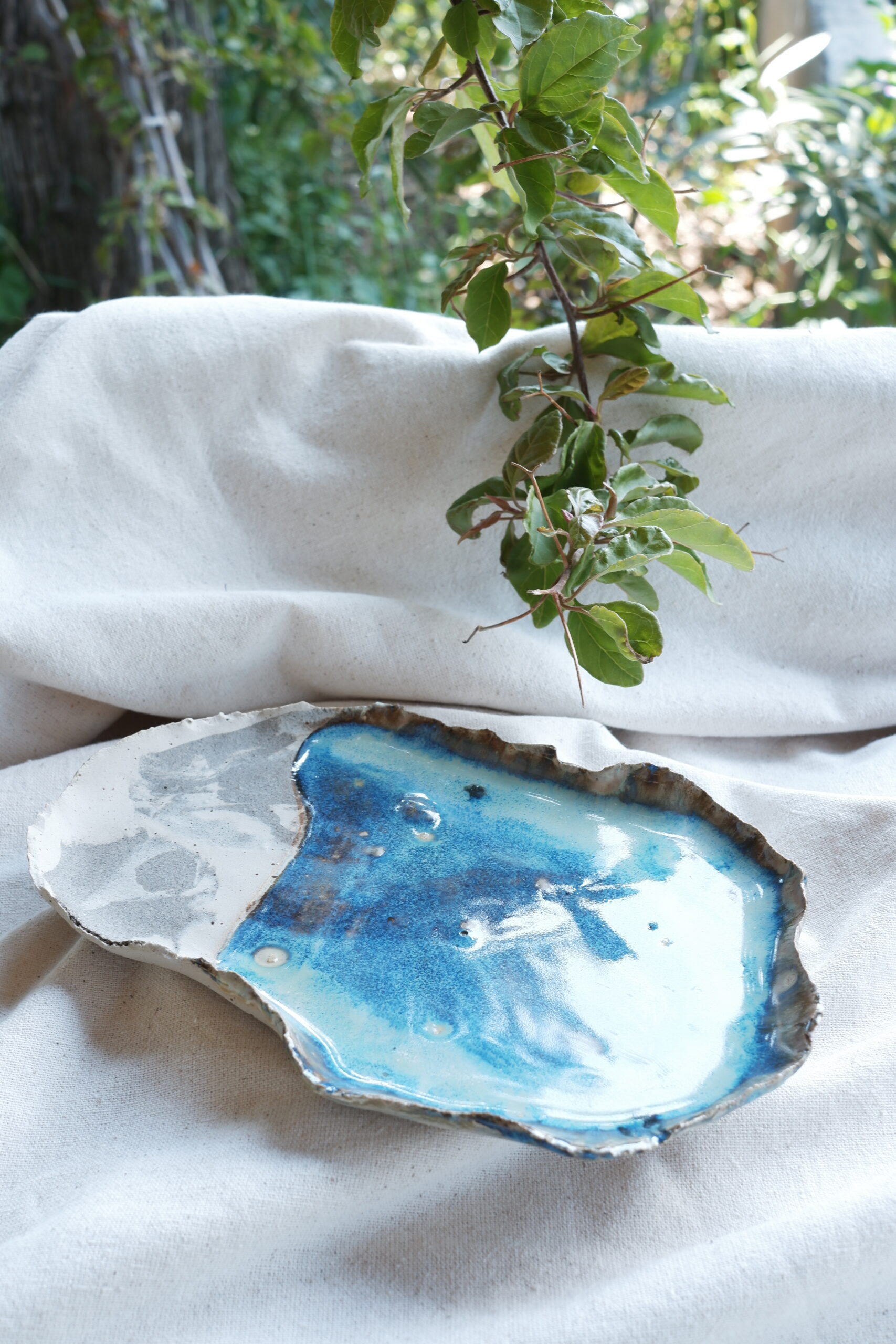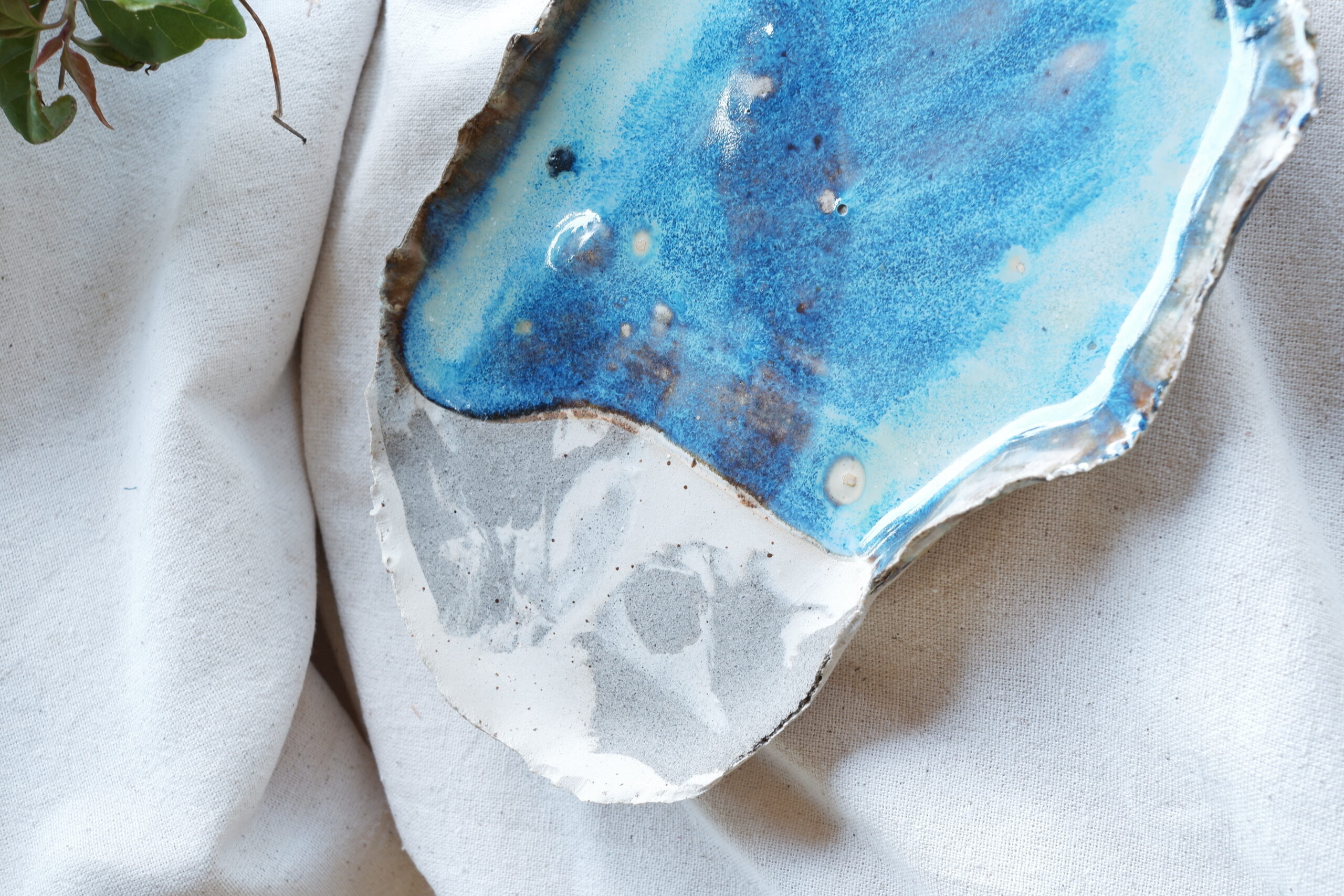 Her birini tek ürettiğim birbirinden farklı sofra sunumları içeren The Sea Remembers Collection’a ait parçalarından biri Ocean Core Seramik Sunum Tabağını stoneware çamurdan elde şekillendirerek ve 1250 derecede pişirim yaparak hazırladım.