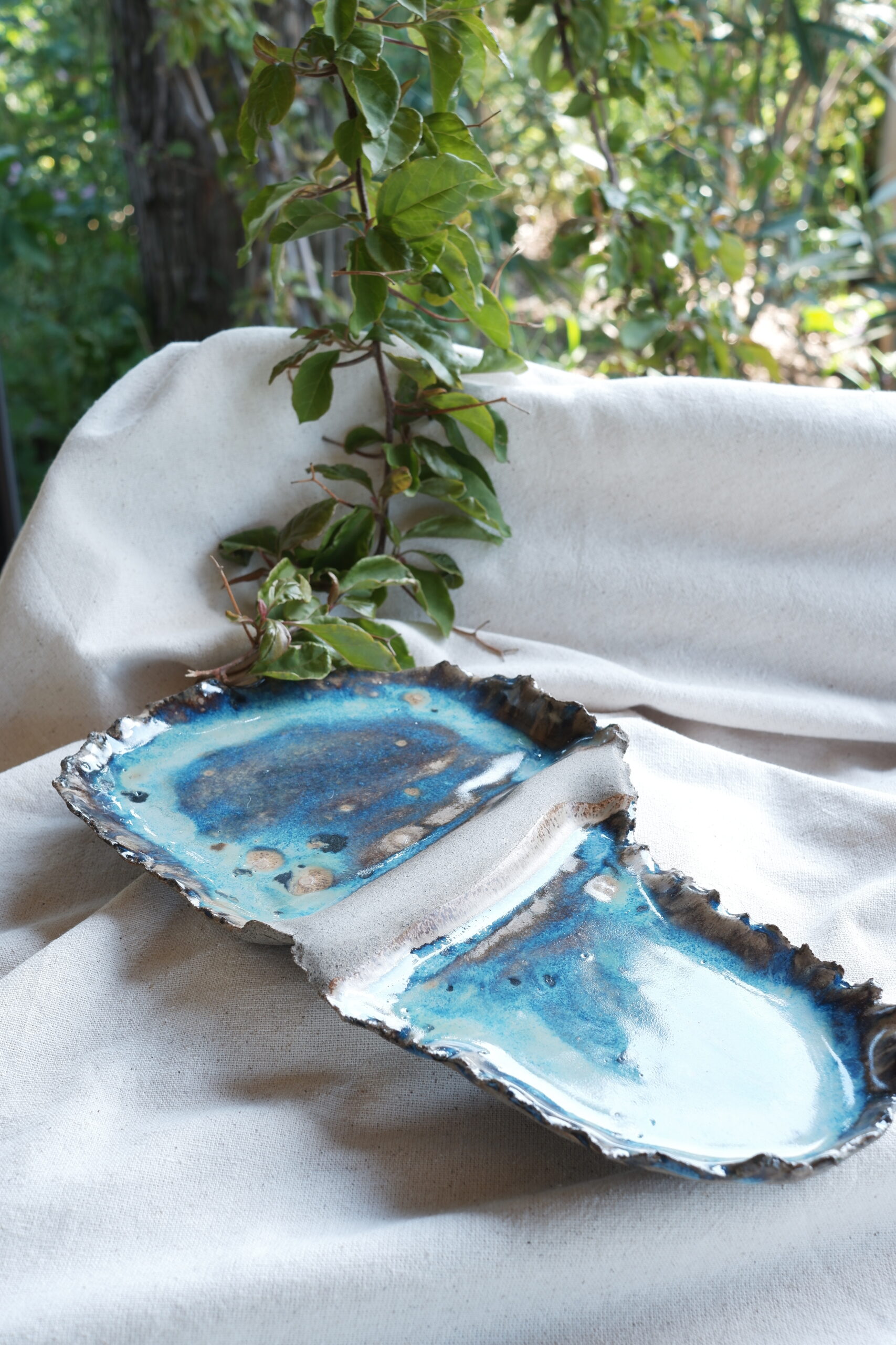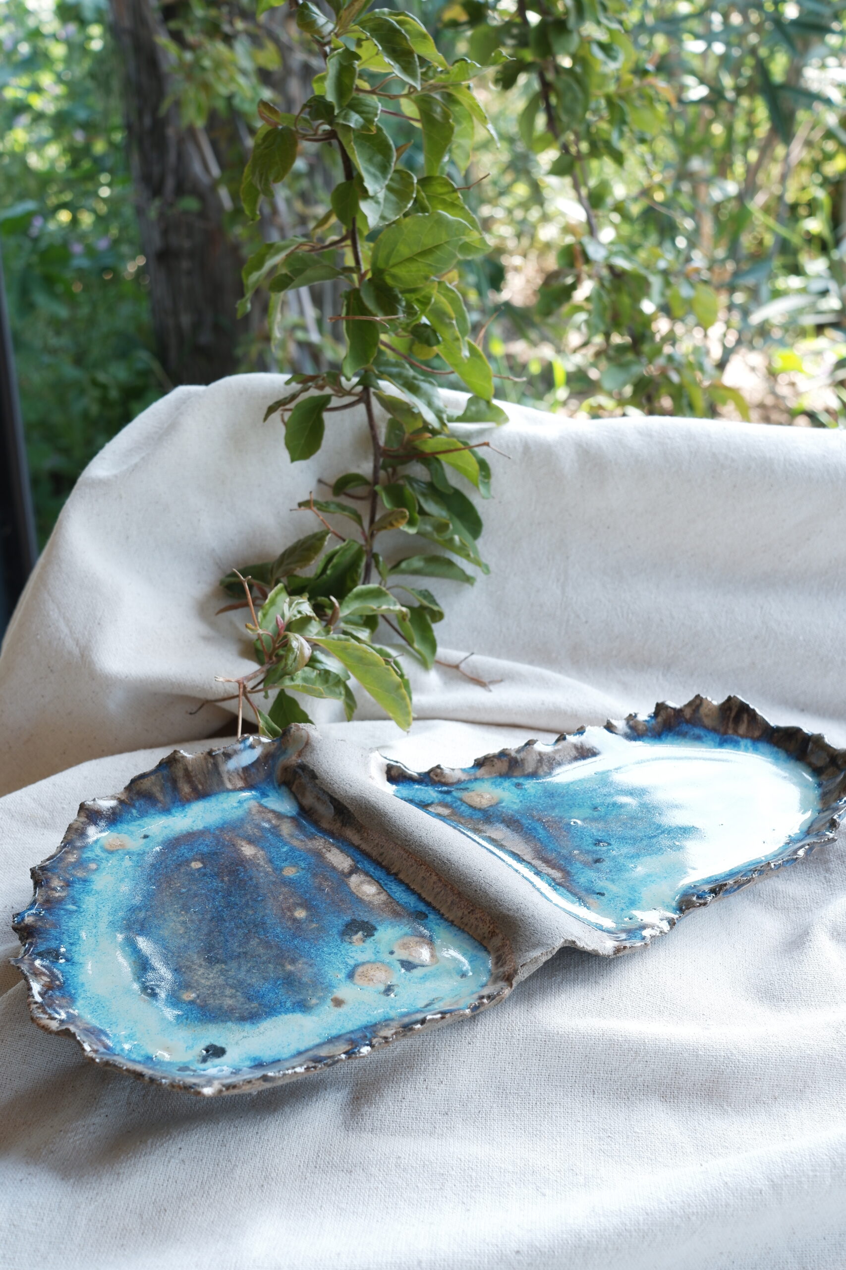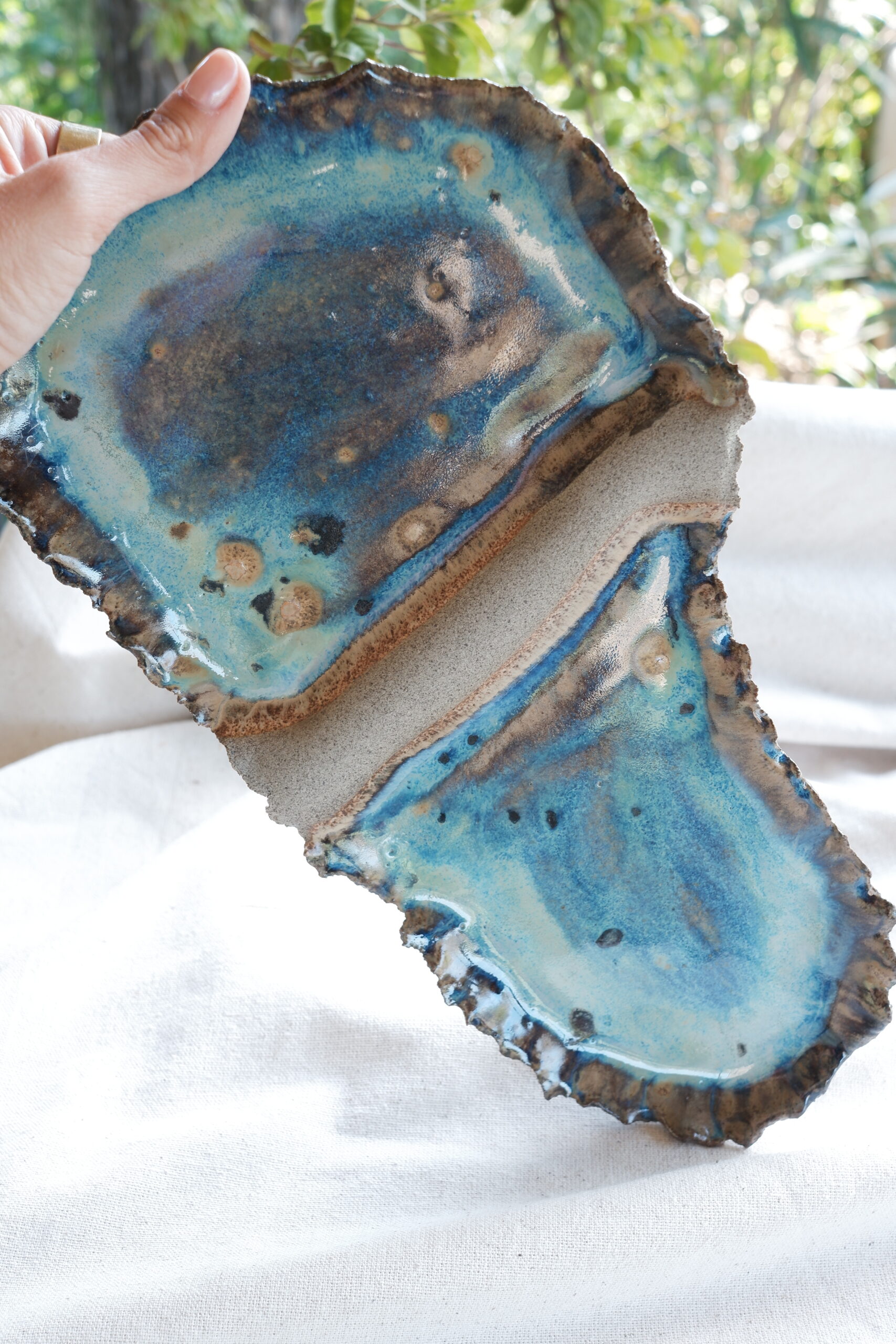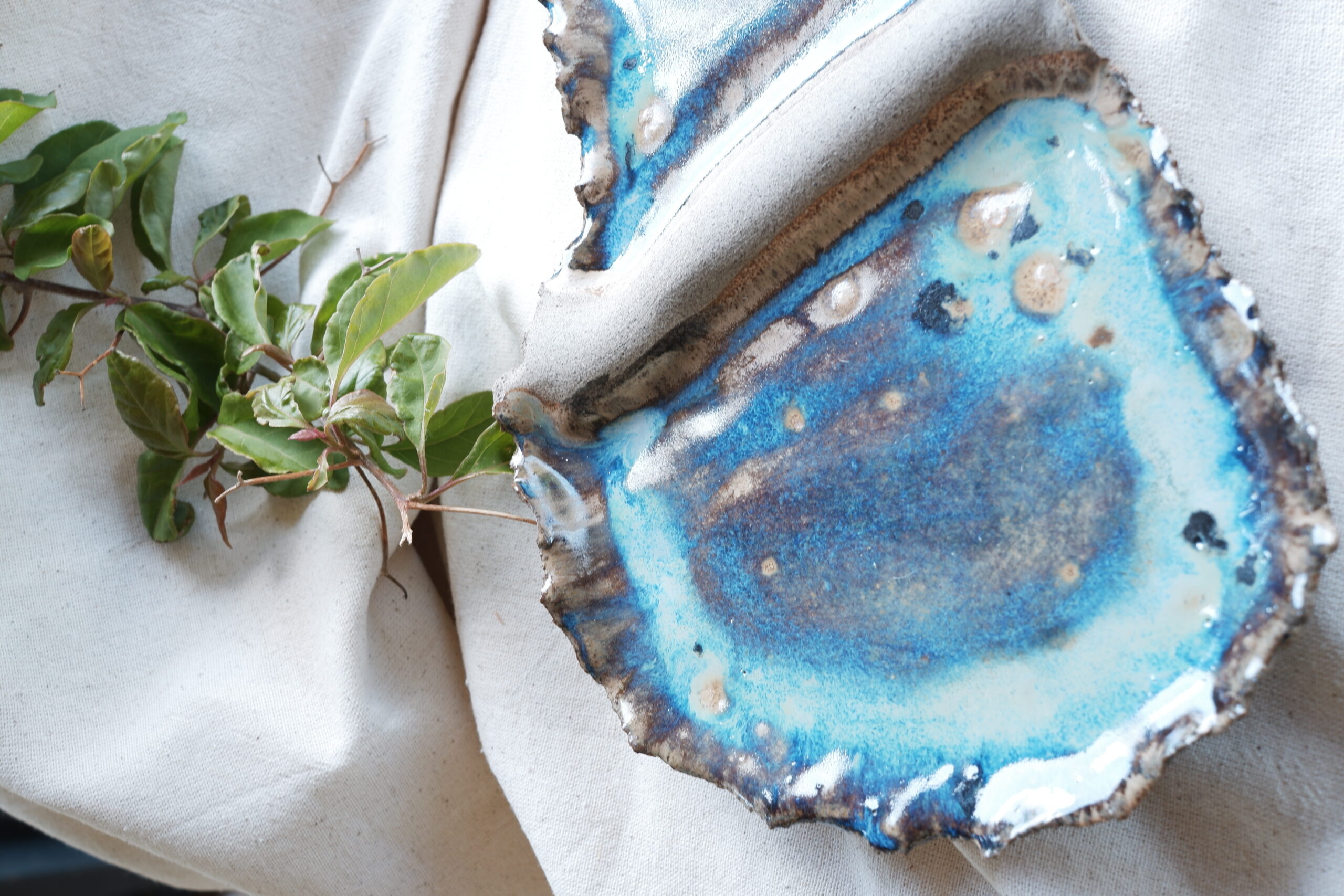 Her birini tek ürettiğim birbirinden farklı sofra sunumları içeren The Sea Remembers Collection’a ait parçalarından biri Ocean Core Seramik Sunum Tabağını stoneware çamurdan elde şekillendirerek ve 1250 derecede pişirim yaparak hazırladım.